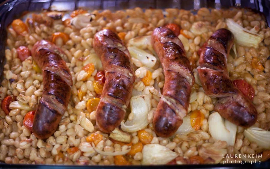 Now that we're firmly moving into warmer weather and gloriously long spring and summer days, I thought it was high time I gave Annie the recipe for the hearty, one-pot sausage and bean dinner that regularly graces our weeknight evenings.