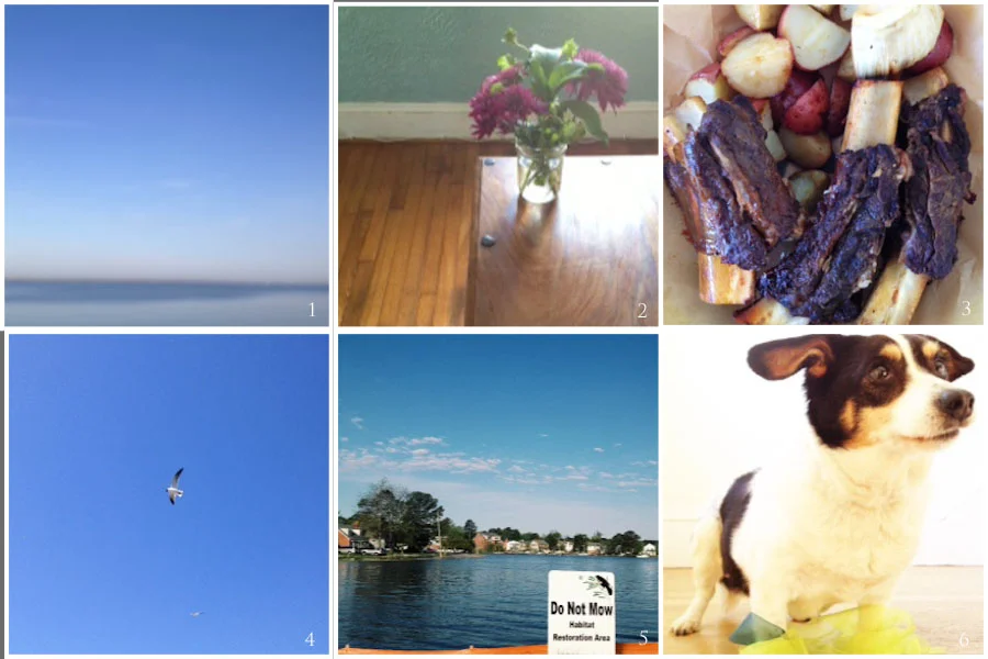 1. blur | 2. table | 3. dinner from a paris kitchen | 4. gulls at the game | 5. wetlands coming back | 6. violet wants a contract as a super model